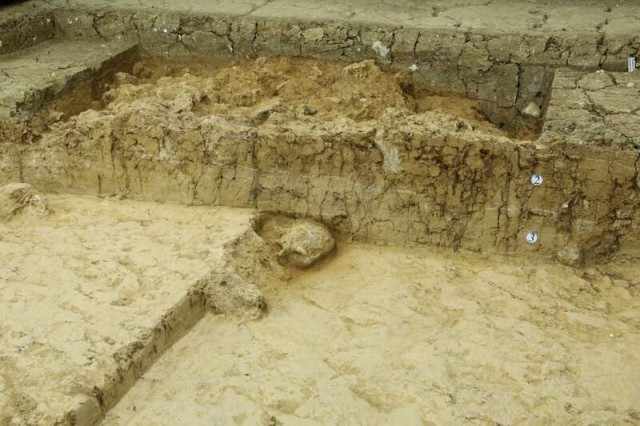 2021年以来,湖北省文物考古研究院对学堂梁子遗址进行了系统的考古发掘,发现1具保存较为完好的古人类头骨化石,命名为“郧县人3号头骨”。3号头骨化石,距此前2具头骨化石出土地点约35米,发现于距地表深约0.62米的文化层,目前已出露额骨(包括眉脊)、眼眶、顶骨、左侧颧骨和颞骨及枕骨左侧,形态清晰,未发生明显变形,还同时伴随出土大量动物化石与石制品。