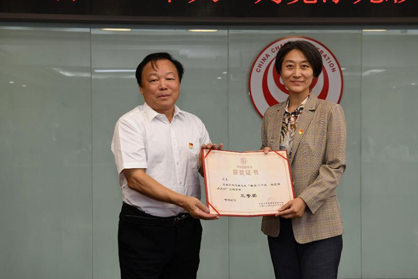 边志伟为三等奖获得者和最佳组织单位颁奖