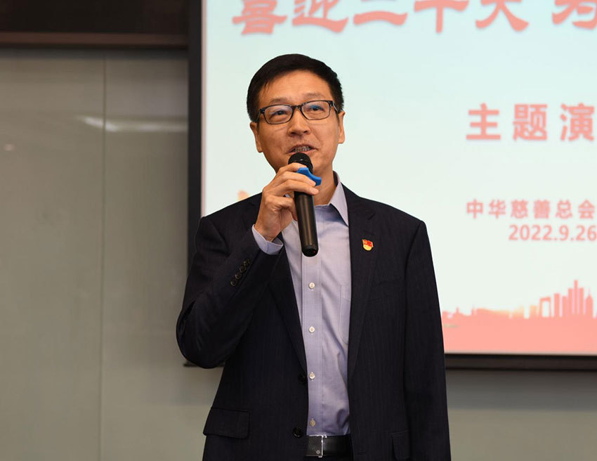 他指出,今年以来,中华慈善总会党委按照上级组织部署要求,开展了一系列特色鲜明的主题活动,大力营造迎接党的二十大的浓厚氛围。本次演讲就是系列主题活动中的一项重要内容,必将激励广大党员干部在向党的第二个百年奋斗目标进军的新征程上奋勇争先、建功立业。