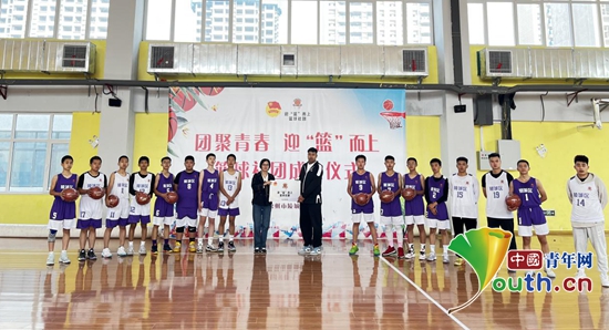 图为团陵城区委书记李巍为篮球社团揭牌。团陵城区委供图