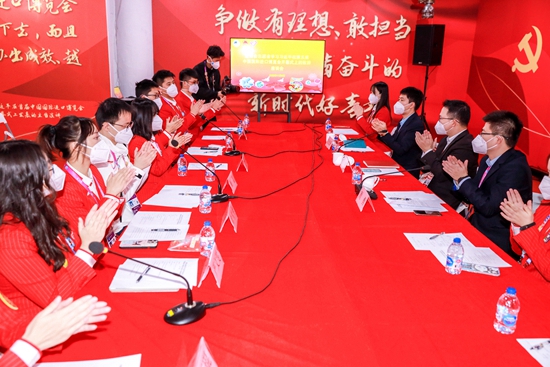 11月5日,进博会志愿者集中学习习近平总书记在第五届进博会开幕式上的重要致辞。
