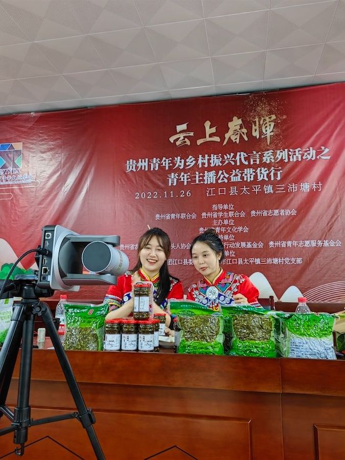 中国青年报客户端讯(中青报·中青网记者 李雅娟)11月26日,“云上春晖”贵州青年为乡村振兴代言系列活动之青年主播公益带货活动,在贵州省铜仁市江口县太平镇三沛塘村开播。