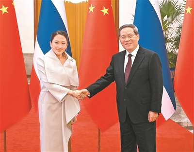李强表示,今年是中泰建交50周年暨“中泰友谊金色50年”。习近平主席上午同总理女士举行会晤,为推进中泰命运共同体建设擘画新的蓝图。中方始终把发展对泰关系放在中国周边外交的优先位置,愿同泰方一道继续努力,按照两国领导人的战略引领,保持高层密切交往,巩固增进战略互信,推动中泰关系迈上新台阶,为两国人民带来更多福祉。