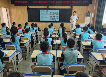 活动现场,相关单位负责人为龙州县“希望护航站”揭牌。浙江师范大学研究生支教团教师向少先队员开展铸牢中华民族共同体意识宣传,讲述什么是“铸牢中华民族共同体意识”、广西三月三文化、黄文秀先进事迹等,进一步增强队员民族团结意识。