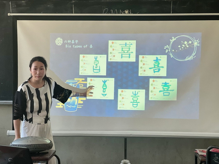 讲座中通过视频展示、小组讨论等多种形式,激发了学生们的学习兴趣。学生们还在几位老师的带领下,学习如何书写中国历史上各种形态的“喜”字。在观看了中国的婚礼视频后,跟老师们学起了如何剪“喜”字,每一位同学都踊跃参与,十分出色地完成了自己的作品。