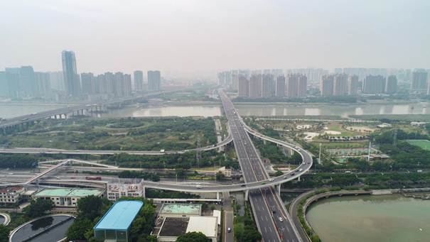 4月21日,车辆在泉州市刺桐大桥上行驶(无人机照片) 新华社福建分社 周义摄