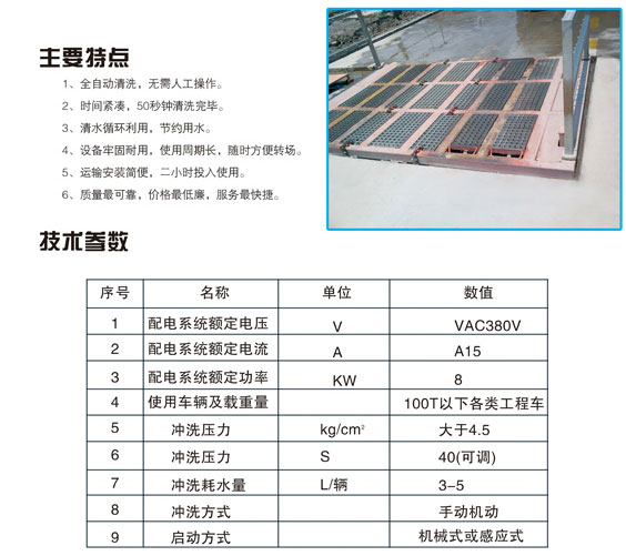 工程车辆全自动洗车机主要特点和技术参数-永利棋牌