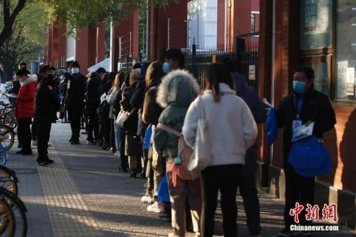 资料图:公务员考试考场外,工作人员核验考生信息。 中新社记者 蒋启明 摄