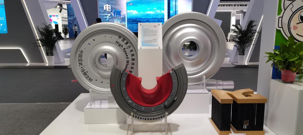中国宝武钢铁集团有限公司展出的高铁车轮。新华社记者 胡锐 摄
