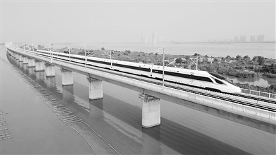 “沪宁沿江高铁是我国首条大规模应用40米箱梁建设的高速铁路,较使用32米箱梁建设,桥墩数量减少20%,提高了跨越道路河流的能力,有效节省了工程占地,大幅降低了修建成本。”国铁上海局集团党委宣传部副部长周伟介绍。在沪宁沿江高铁经过的滆湖大桥,桥墩数量由240个减少至198个,占用水面面积有效降低17.5%。