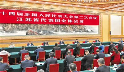 在认真听取大家发言后,习近平作了发言。他首先表示赞成政府工作报告,充分肯定江苏经济社会发展取得的新进展新成效,希望江苏坚定信心、鼓足干劲、勇挑大梁,为全国大局作出更大贡献。