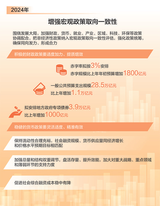 今年的《政府工作报告》提出,增强宏观政策取向一致性。下一步,如何强化政策统筹,继续巩固和增强经济回升向好态势?宏观政策将怎样发力,为高质量发展营造良好环境?记者进行了采访。