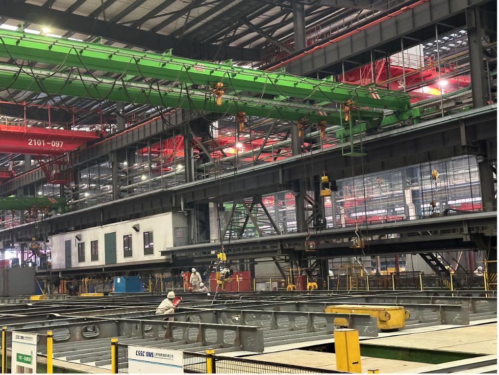上海外高桥造船有限公司薄板中心工作现场。新华社记者金地 摄