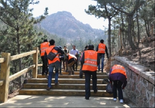 队员们穿着整齐统一写着中建三局(山东)标志的志愿者队服,艳丽的颜色成为登山路上的一道靓丽风景。志愿者们一路登山,一路捡拾道路两旁的纸屑、果皮等垃圾,受到来往行人的注目,有游客拿出相机拍上志愿者们的活动并向队员们问好。来到山顶,大家比赛着各自的战利品,微笑展现在每个人脸上,没有登山的劳累,只有收获的喜悦。